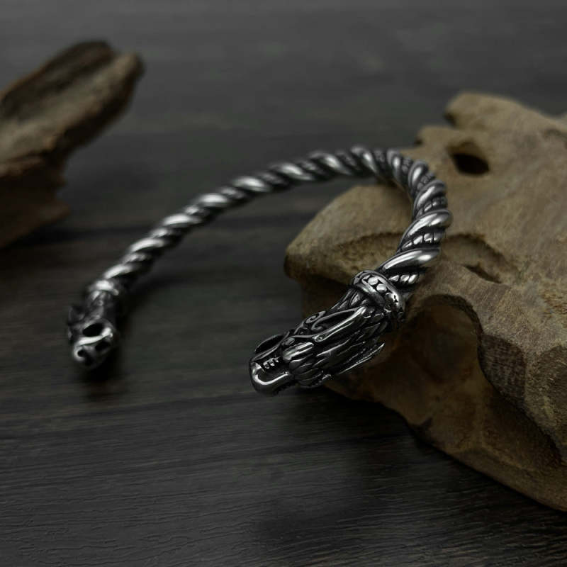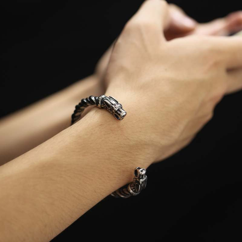 Retro Viking Men's Open Bracelet Domineering Dragon Head Jewelry