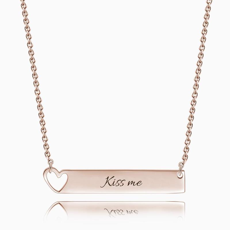Heart Bar Necklace with Engraving Rose Gold Plated Silver