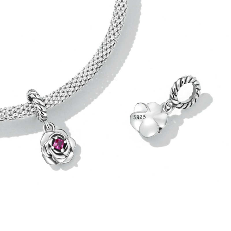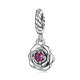 Rose with Pink Red Zircon Dangle Charm Silver