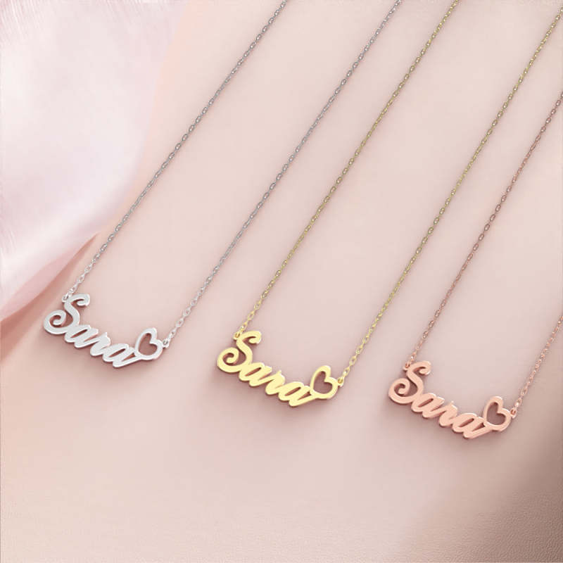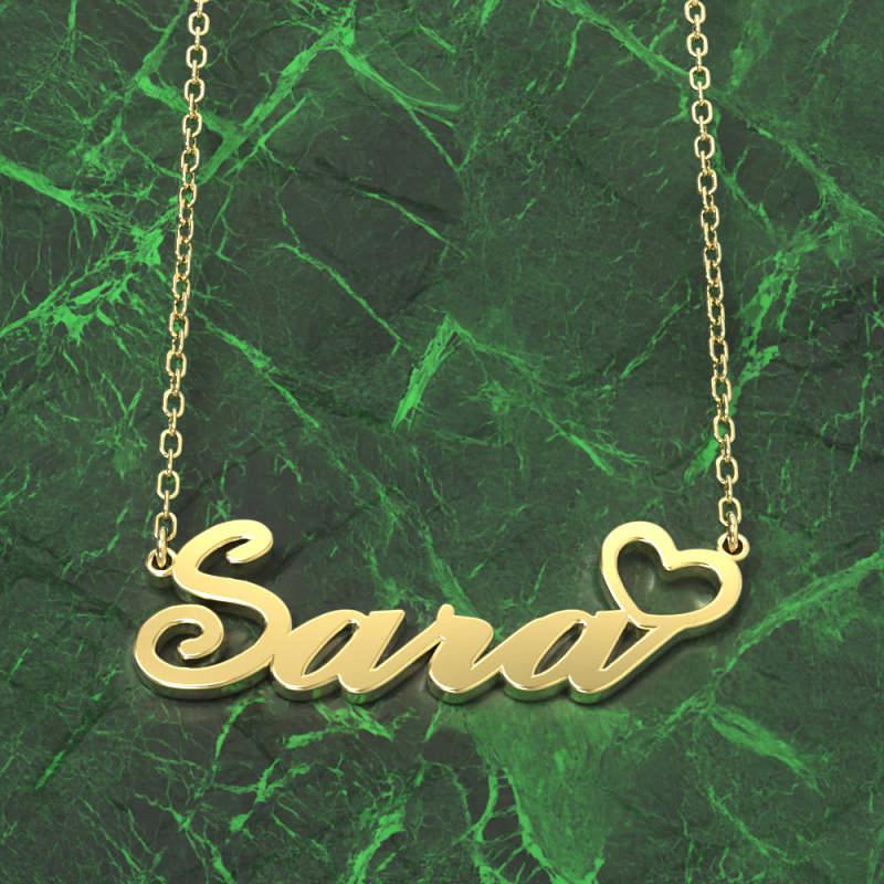 Sara Name Necklace 14k Gold Plated Silver Custom Necklace with Heart, Personalised Gifts For Her