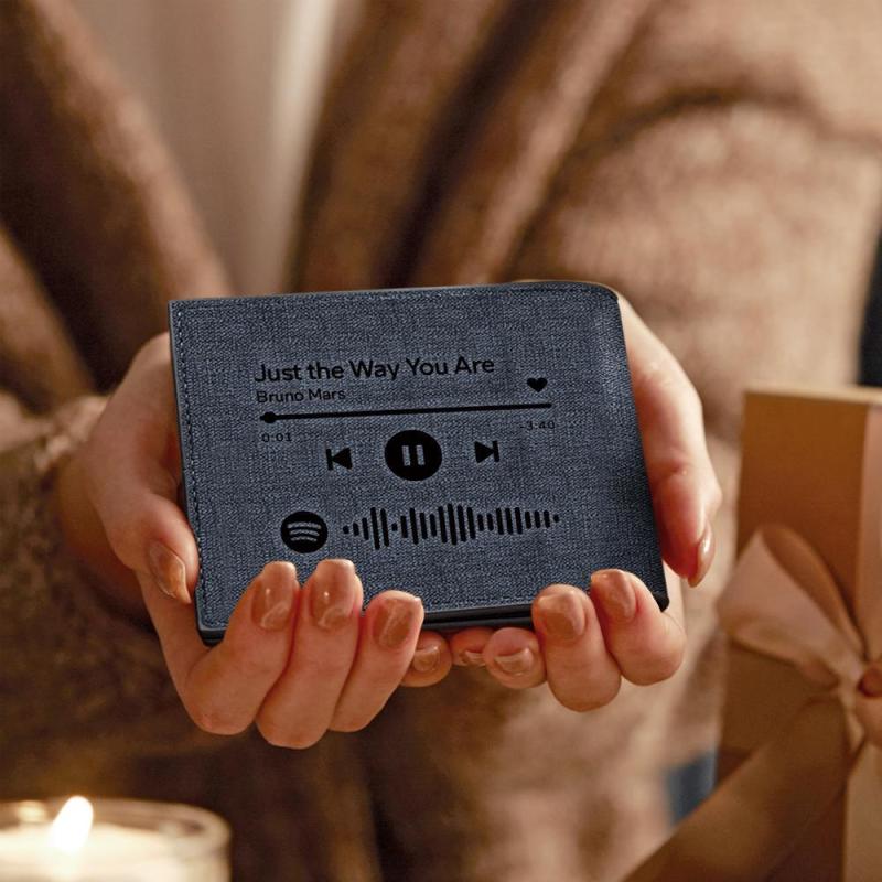 Scannable Spotify Code Wallet Photo Engraved Wallet Gifts for Boyfriend/Husband