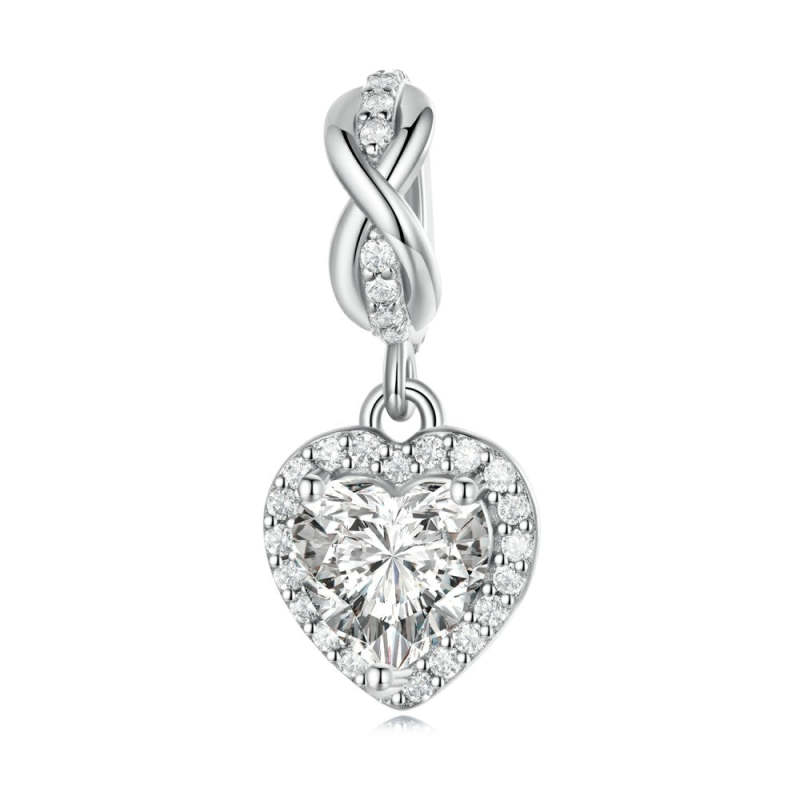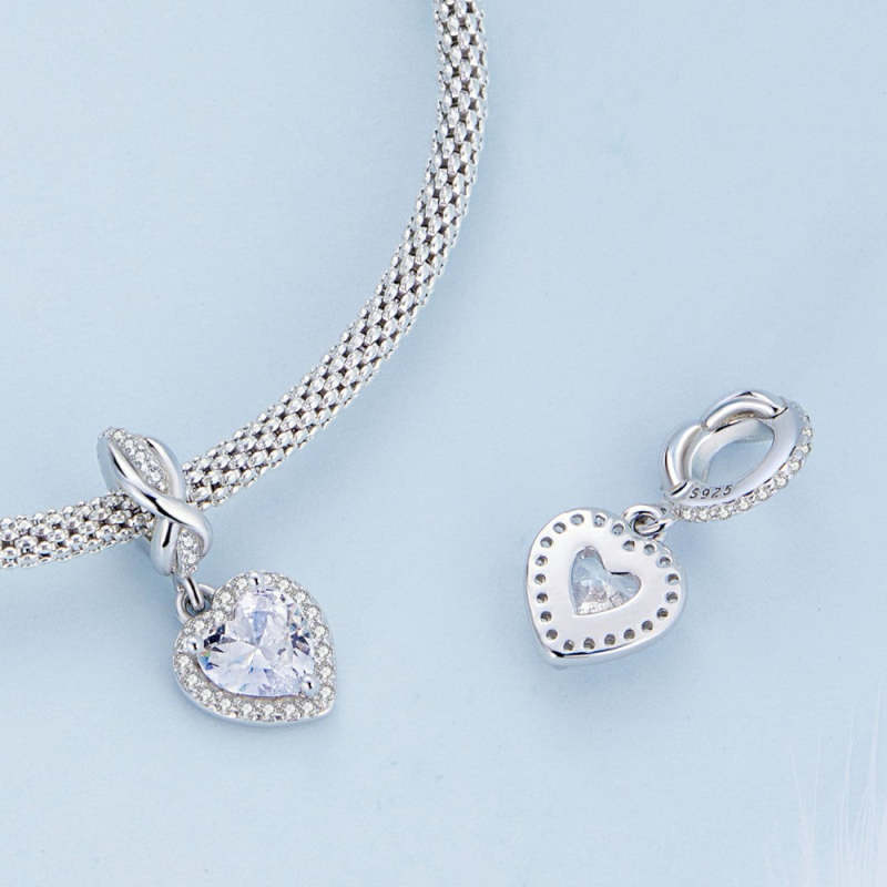 Shining Heart Dangle Charm Silver