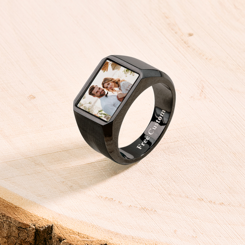 Customizable chunky photo rings: Click "Customize Now" upload one prepared legible picture and continue to click "text engraving", choose the font, then input the words. You will get an unparalleled signet ring. With the picture of your loved ones, family get-together, friends reunion or important event on the face of the ring, keep some loving memory always by your side.