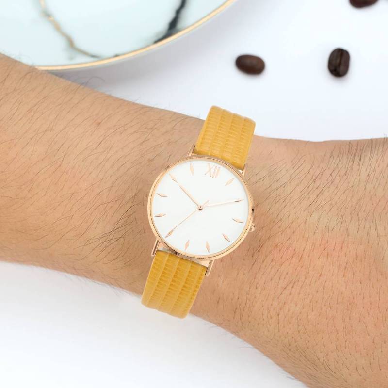Soufeel adopts the watch movements manufactured by world's leading movement manufacturer Ronda in Switzerland and Citizen in Japan, you will enjoy the precise time as you wish. Daily life water resistant. It is a true designer statement and the perfect watch for any occasions. This watch has a simple and unique design, with a slim case, you can easily match any type of accessories to it. This classic timepiece is a perfect gift for you or your friends in a sleek and luxurious way. Soufeel has a ton of customized jewelry options that are reasonably priced and make for great gifts for all sorts of occasions like birthdays, holidays, anniversaries. It's great for layering, a wonderful minimalist piece, perfect gift for your wife, girlfriend, husband, boyfriend or simply to treat yourself! Simply Style Dial Watch Yellow Leather Strap - Men's.