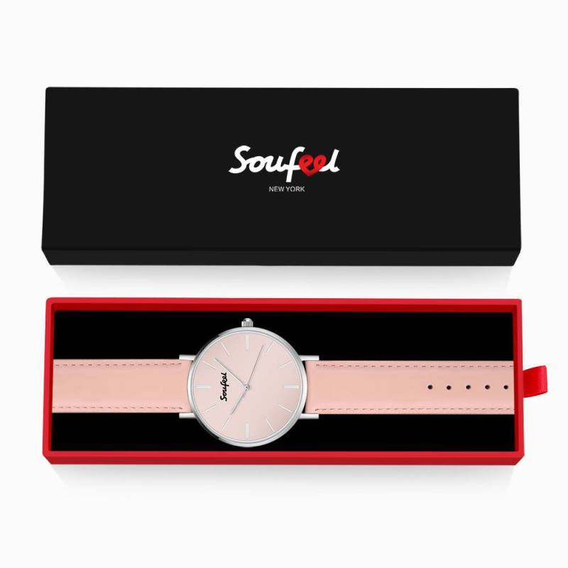 Soufeel Women's Classic Watch Pink Leather Strap 40mm