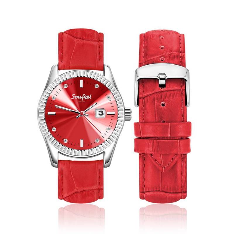 Soufeel Women's crystal Crystal Watch Red Leather Strap 38.5mm
