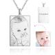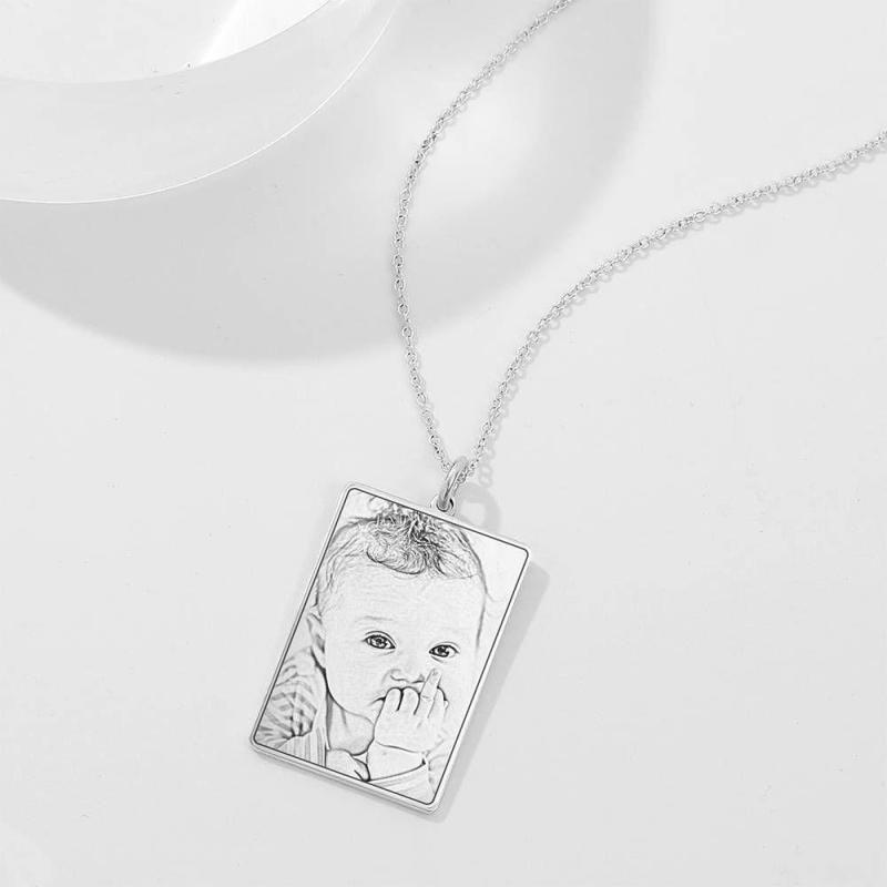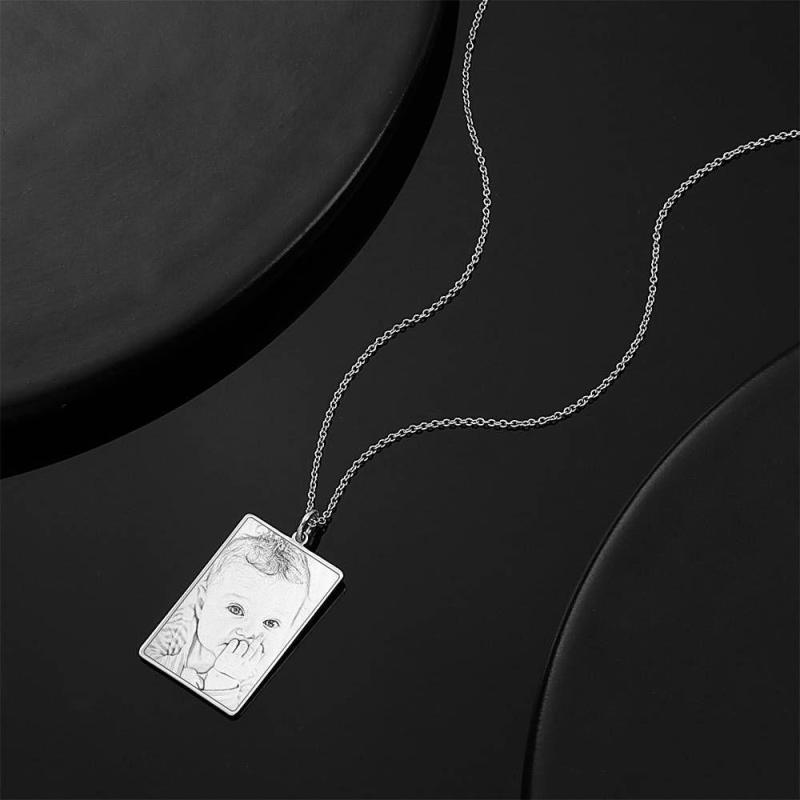 Square Photo Engraved Tag Necklace with Engraving Silver