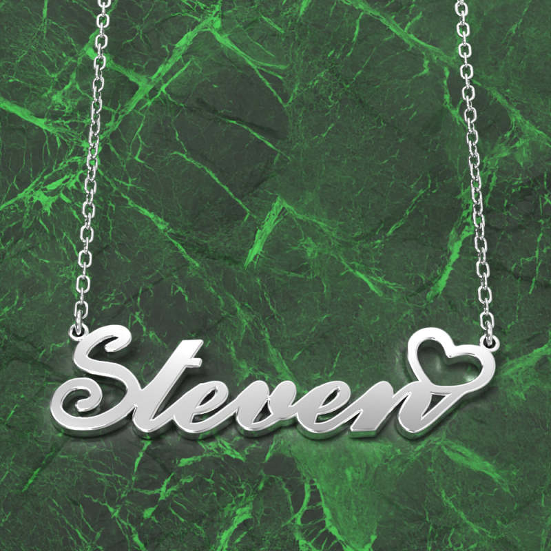 Steven Name Necklace 14k Gold Plated Silver Custom Necklace with Heart, Personalised Gifts For Her