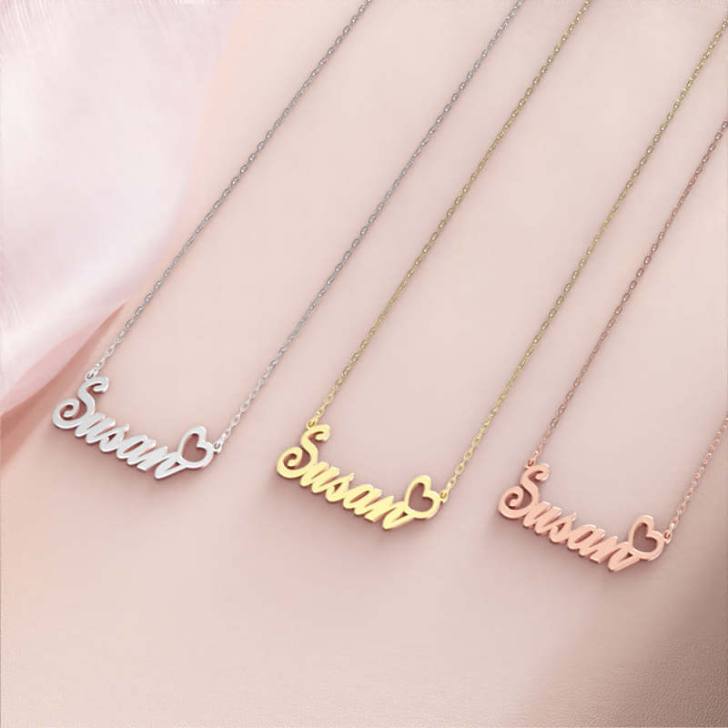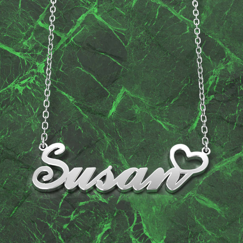 Susan Name Necklace 14k Gold Plated Silver Custom Necklace with Heart, Personalised Gifts For Her