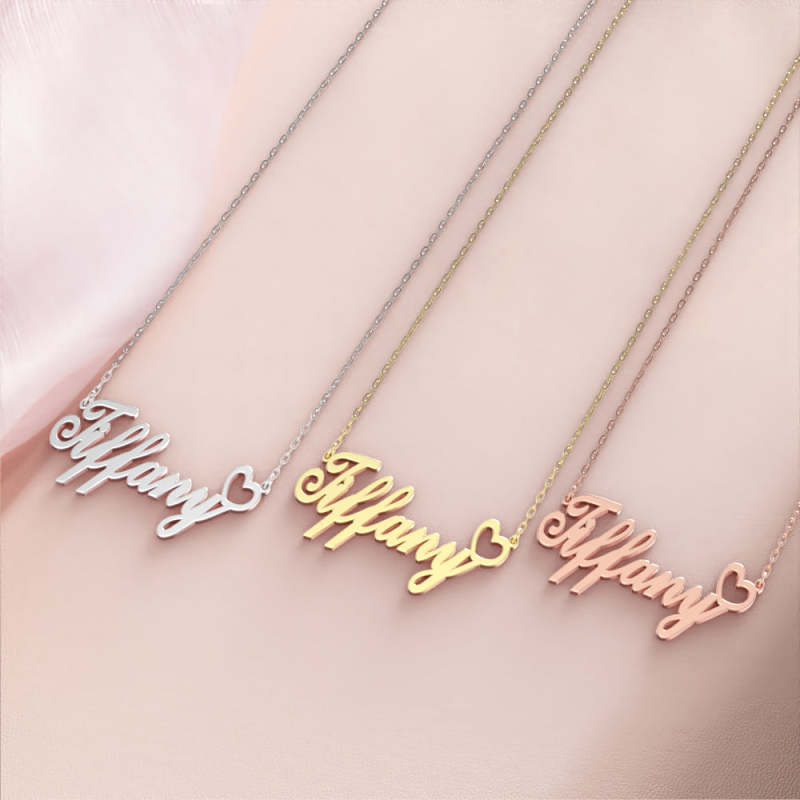 Tiffany Name Necklace 14k Gold Plated Silver Custom Necklace with Heart, Personalised Gifts For Her