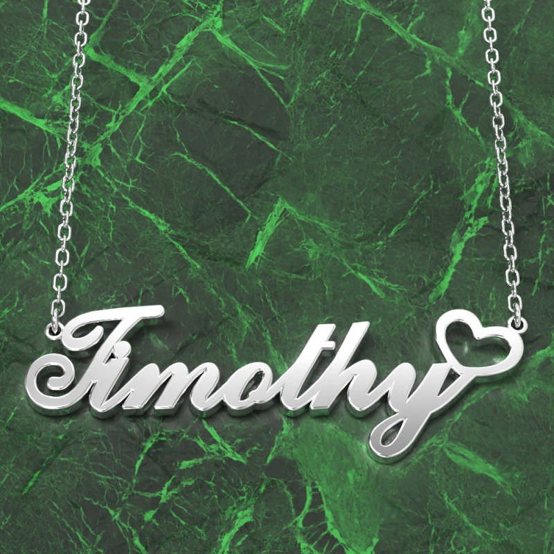 Timothy Name Necklace 14k Gold Plated Silver Custom Necklace with Heart, Personalised Gifts For Her
