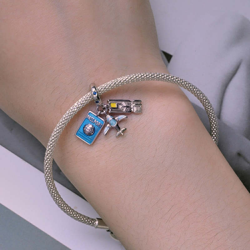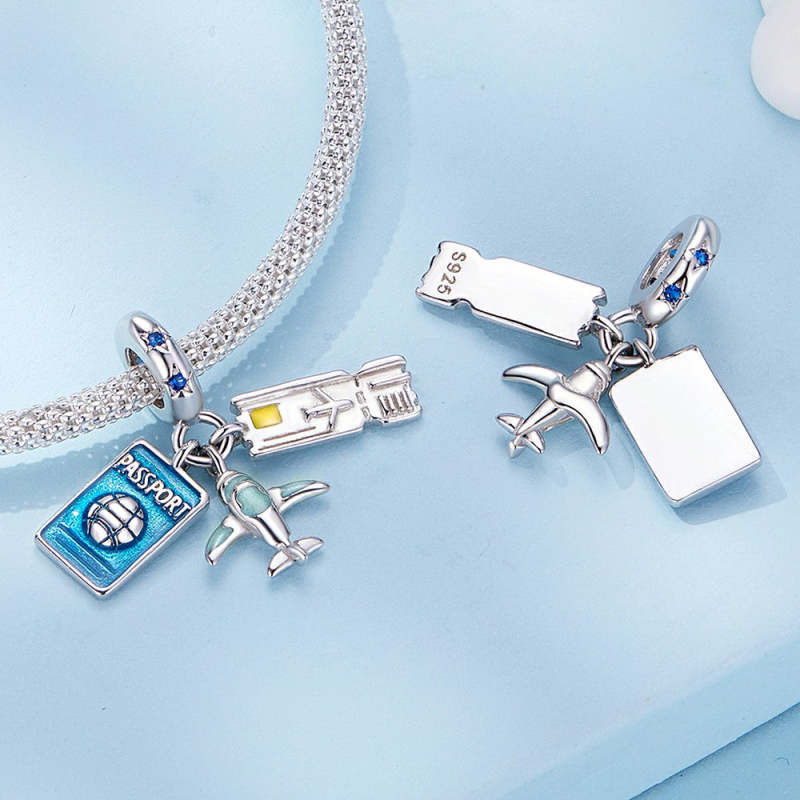 Travel Plane Dangle Charm Silver