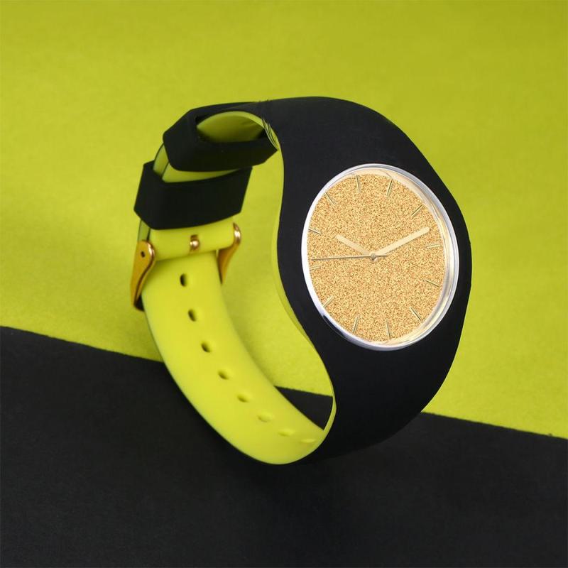 Unisex Silicone Engraved Watch Unisex Engraved Watch 41mm Black and Green Strap - Golden