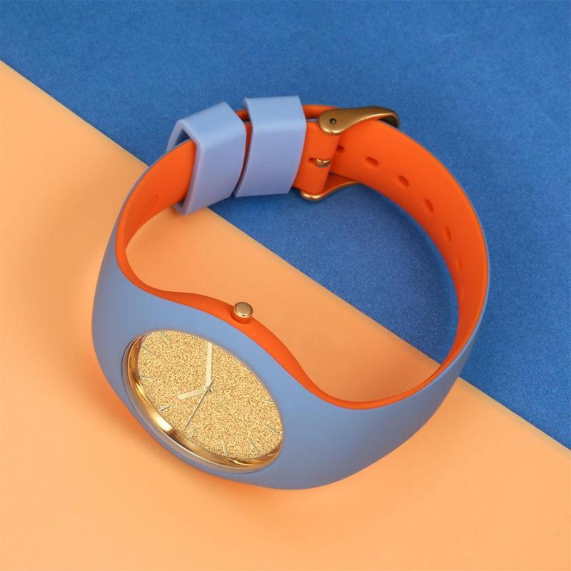 Unisex Silicone Engraved Watch Unisex Engraved Watch 41mm Blue and Orange Strap - Golden
