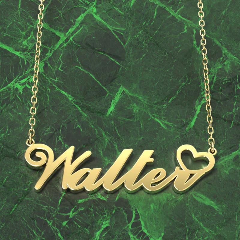 Walter Name Necklace 14k Gold Plated Silver Custom Necklace with Heart, Personalised Gifts For Her