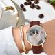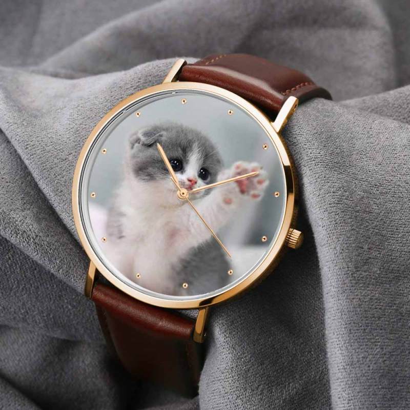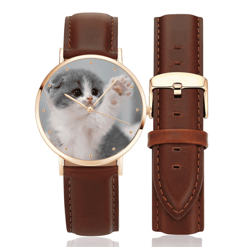 Women's Engraved Rose Goldtone Photo Watch Brown Leather Strap 36mm