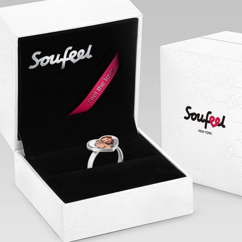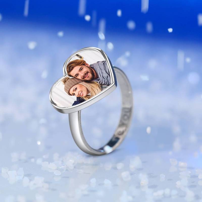 Women's Heart Photo Ring with Engraving Silver