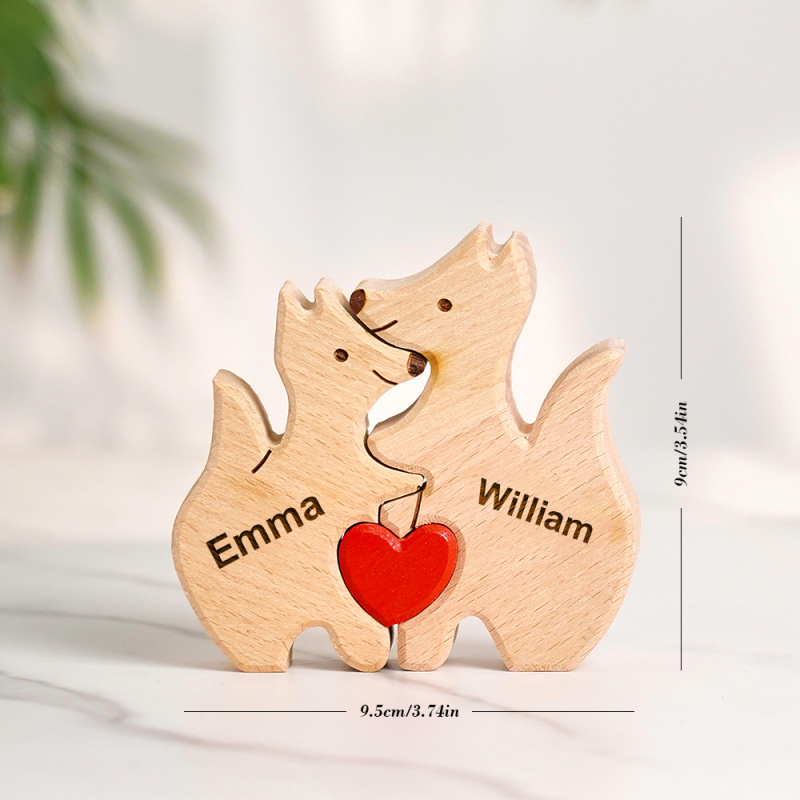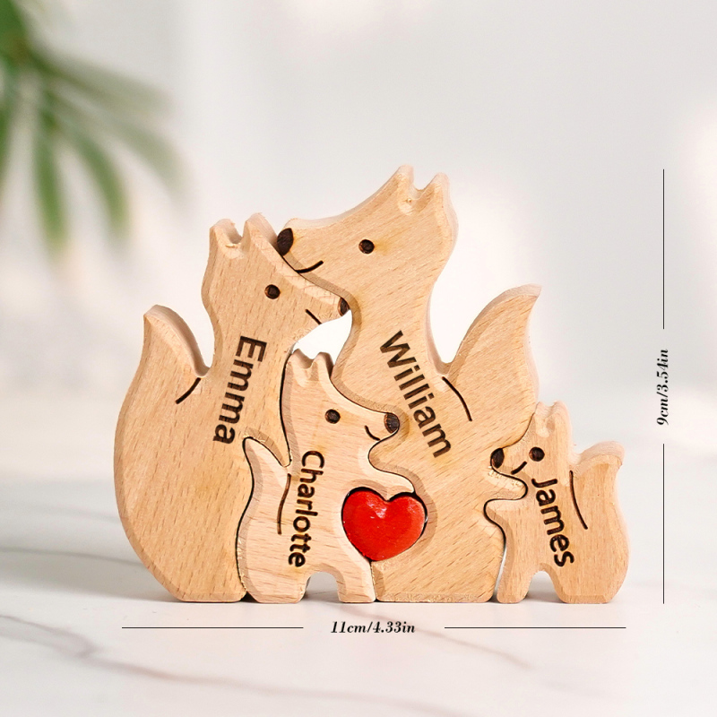 Personalized Wooden Fox Family Puzzle Custom Names House Warming Gifts Keepsake Christmas Gift For Kids