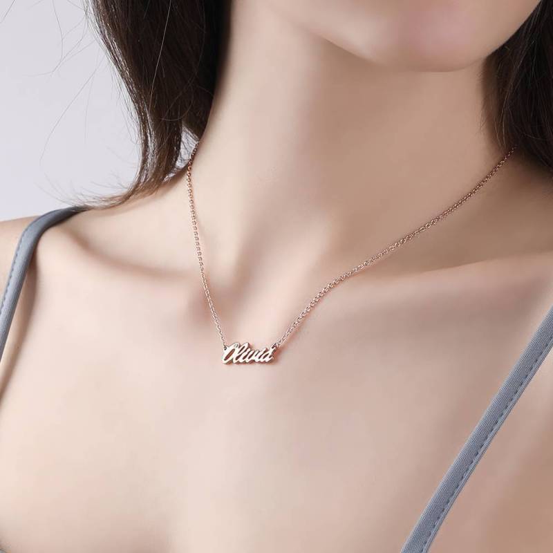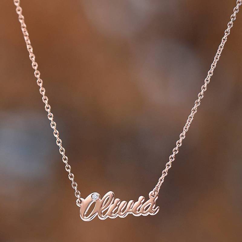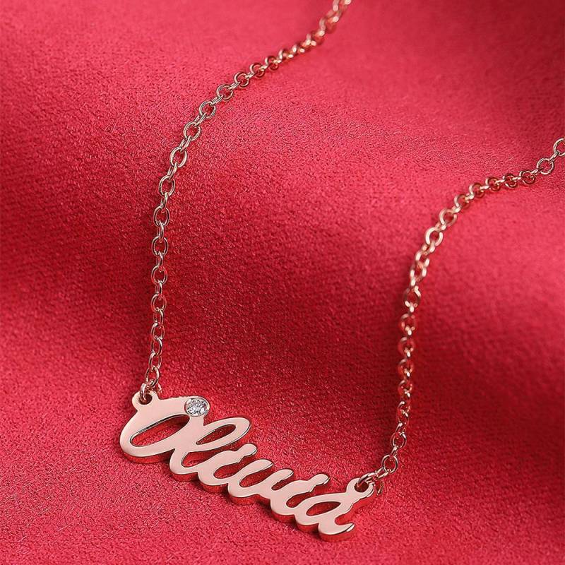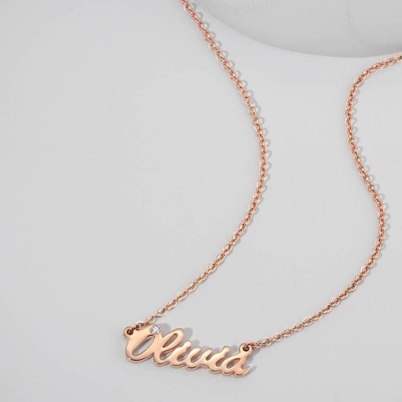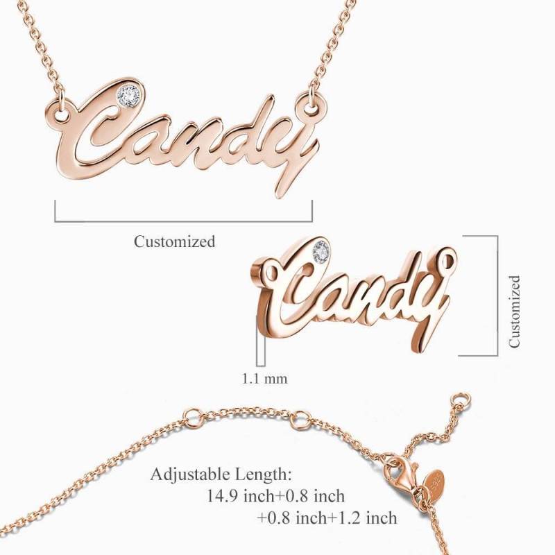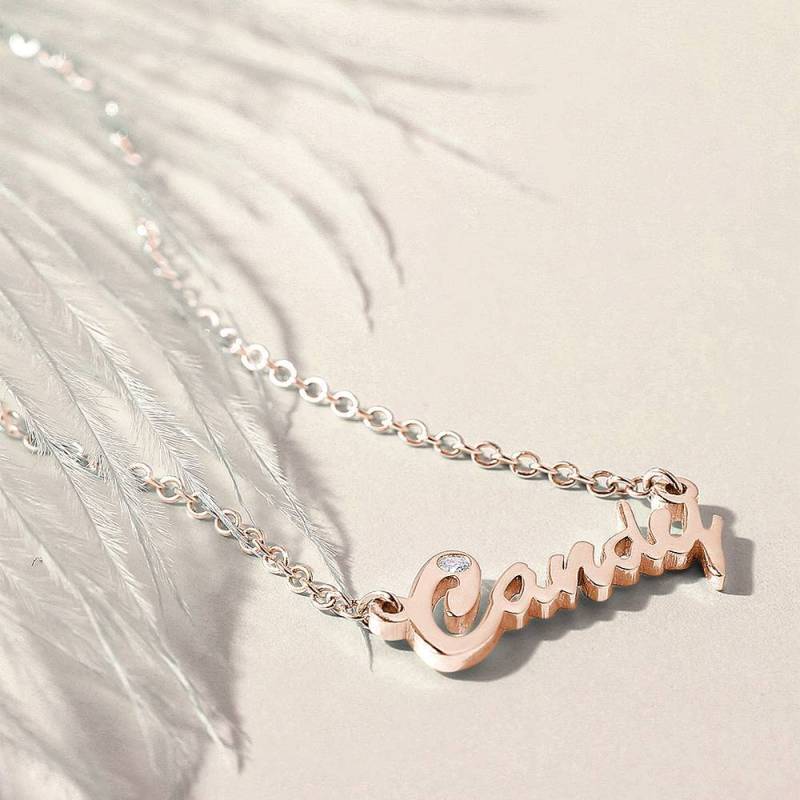 Personalized CZ Name Necklace Rose Gold Plated Silver